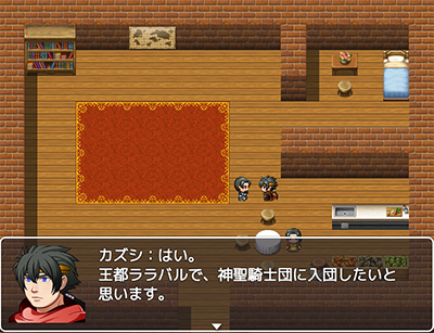 主人公のカズシは、王都ララバルへ行き、騎士団に入隊する夢をもっていた。「神聖騎士団 太陽の盾」入団への旅、いま君も旅に出てみないか?